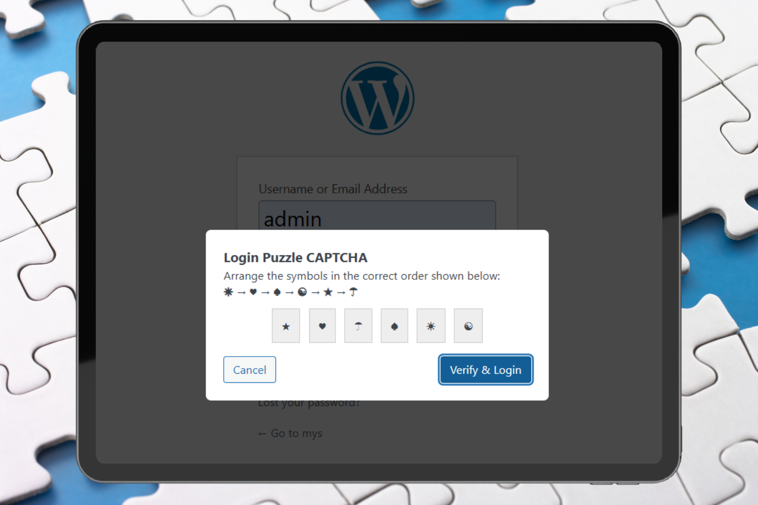 - Log out and visit the login page to see the puzzle in action.